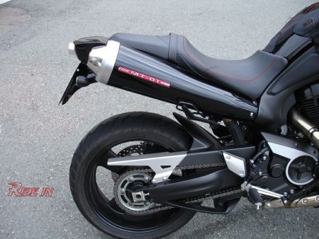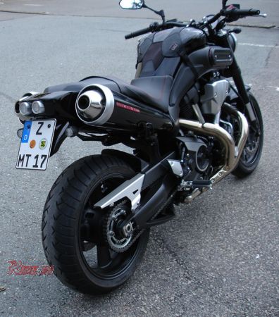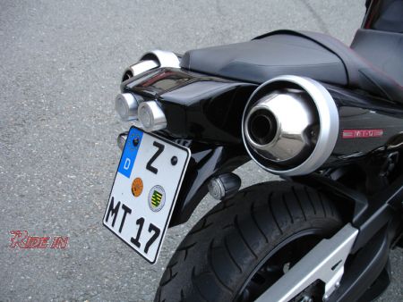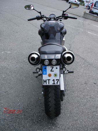 Heckverkleidung aus Glasfiber mit 2 LED Rücklichter in massiven CNC-gedrehten Aluhülsen.
